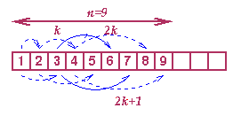 1. Element iza krajnjeg elementa niza se tretira kao prazan (to je sledeći krajnji desni list stabla). Podrazumeva se da je kapacitet niza veći od broja elemenata u nizu.