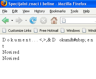 - Za samostalni rad: Kreirati HTML dokument kao na slici.